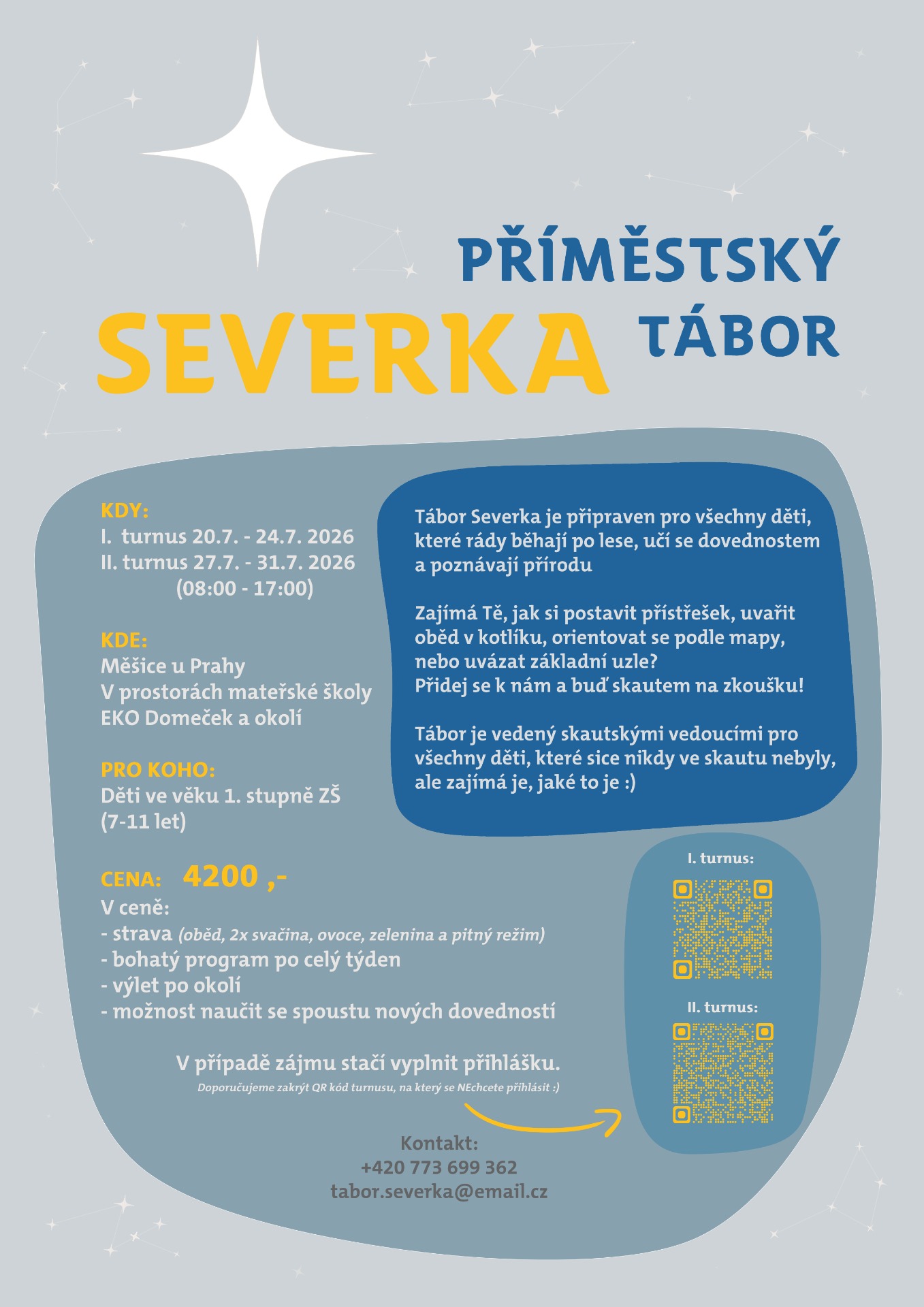 Podrobné informace o termínech, ceně, denním programu a přihlášce najdete na plakátku níže. V případě dotazů nás můžete kontaktovat e‑mailem nebo telefonicky – rádi vám vše upřesníme.